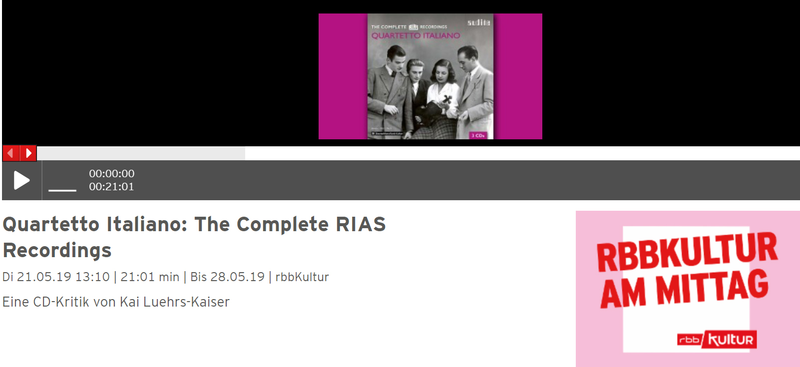 www.pizzicato.lu | 25/05/2019 | Uwe Krusch | 25. Mai 2019 | Quelle: https://www.pizz... Im Archiv gestöbert: Die RIAS-Aufnahmen vom Quartetto Italiano