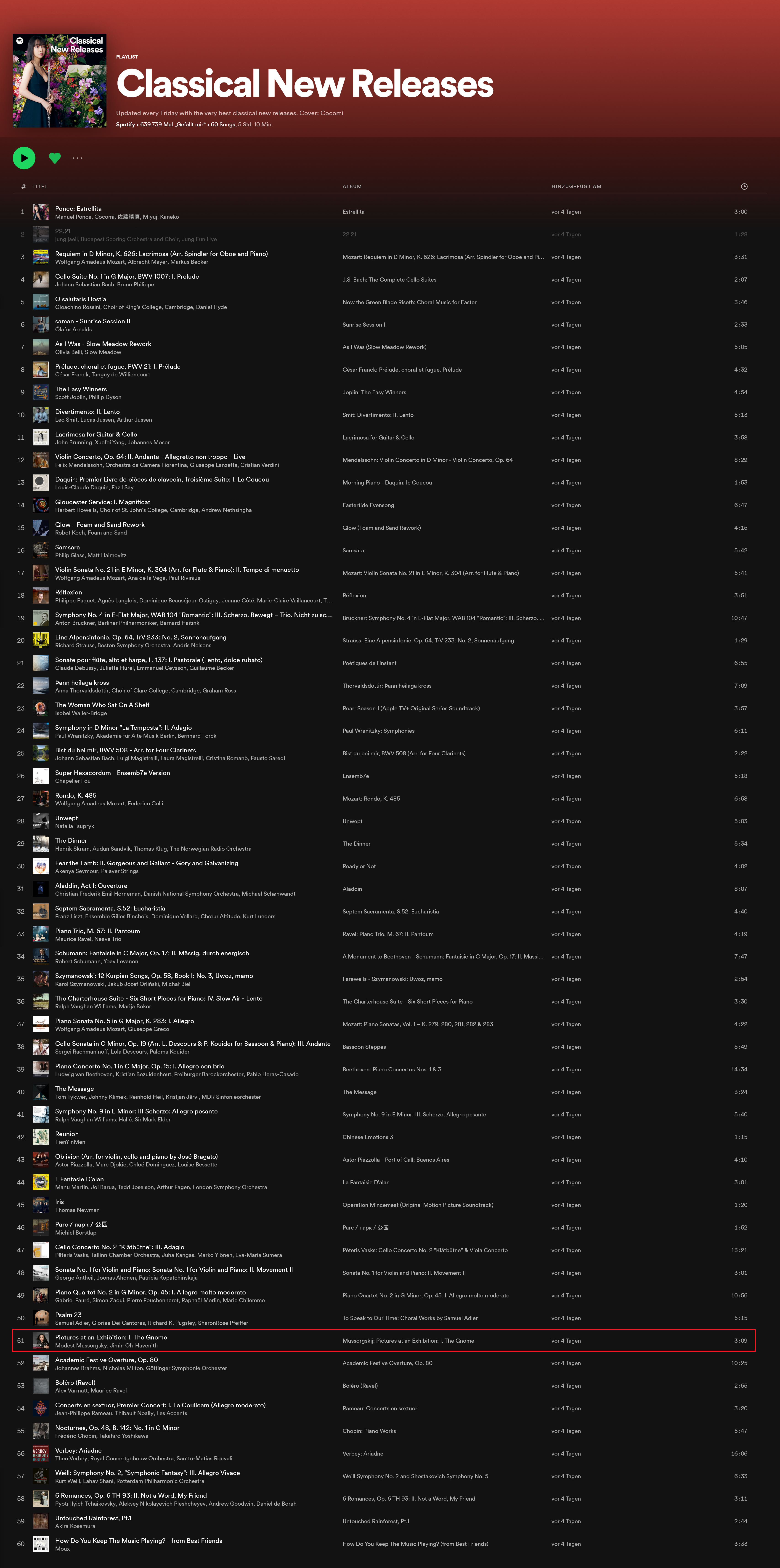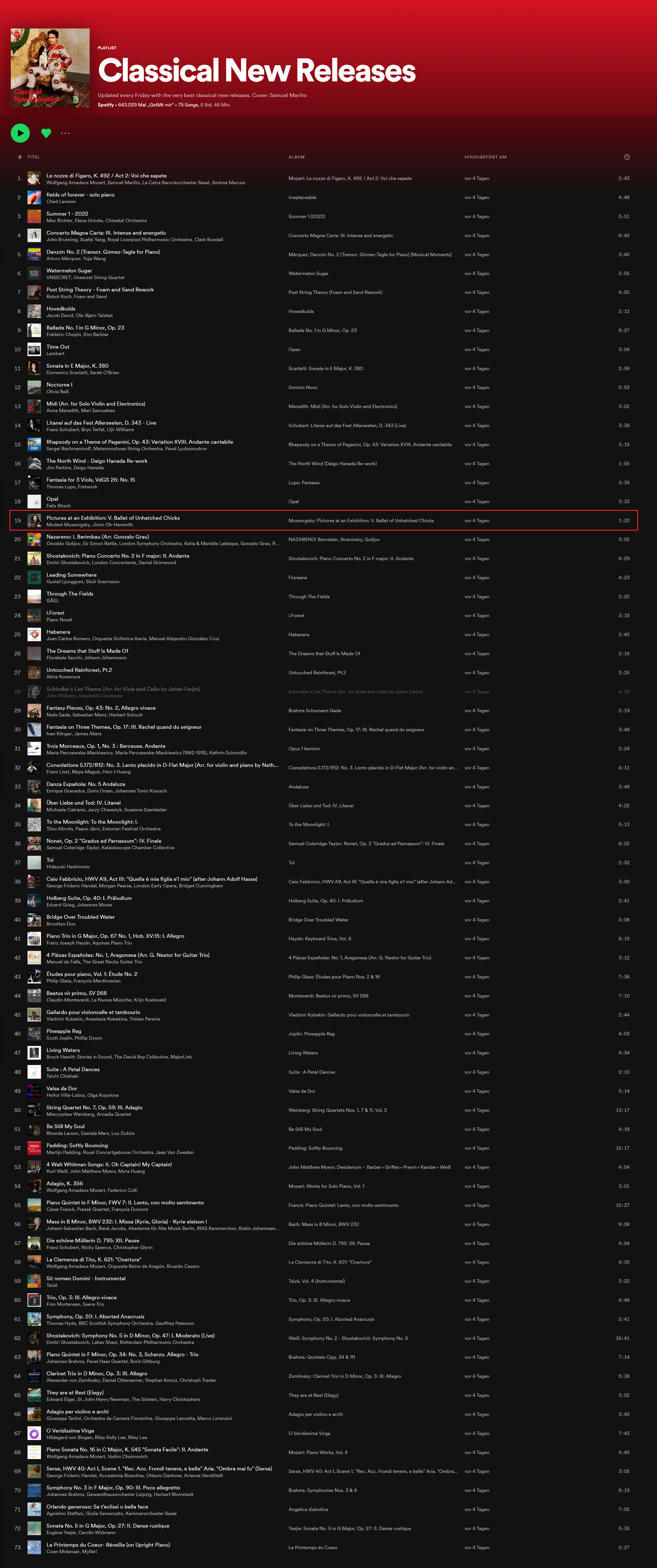 She presents Modest Mussorgsky’s Pictures at an Exhibition in a very dramatic and visualizing interpretation. This results in atmospheric images like the melancholic drawn Old Castle, the awkward staggering of the chicks or the heartrending pleading of poor Schmuyle.
