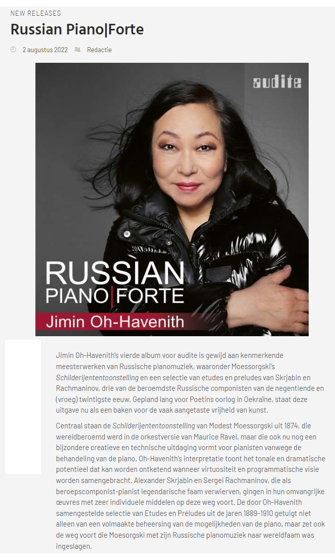 Jimin Oh-Havenith, “Russian Piano Forte”, op het label audite