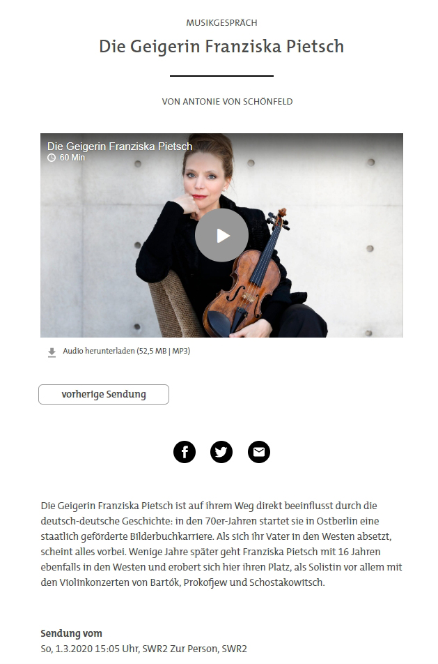 WDR 3 | WDR 3 Mosaik | 14.10.2017 | Daniel Finkernagel | 14. Oktober 2017 Geigerin Franziska Pietsch im Samstagsgespräch