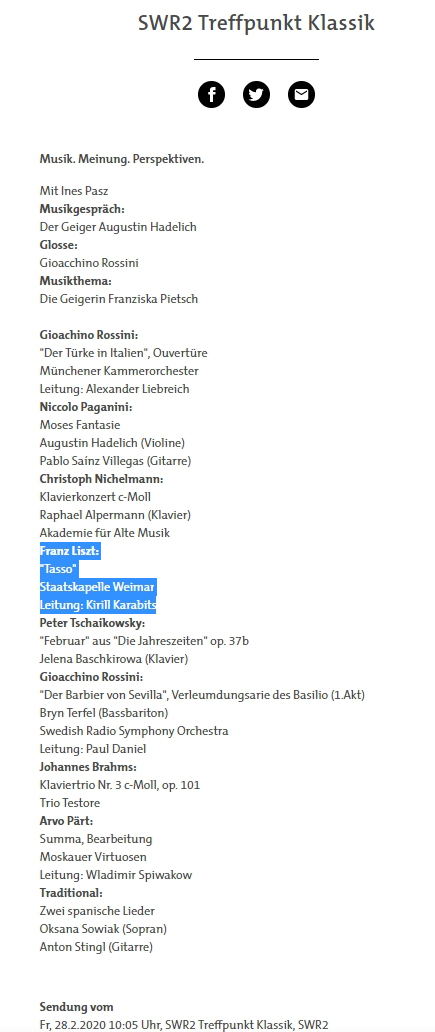 SWR | SWR2 Treffpunkt Klassik, 12:30 Uhr | Manuel Brug | 2. Februar 2020 | Quelle: https://www.swr....