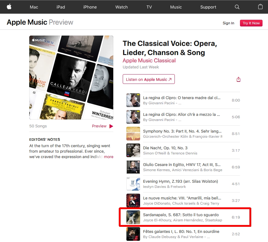 "Constantly pulled in two directions, the character has an abundance of the magical ingredient for the stage: conflict. This is expressed in the music Liszt wrote for her, and it demands every tool in a singer's arsenal. Even in this one extant act, the tormented passion and complexity of her existence is laid bare. Being a slave who was forcibly removed from her homeland, and then, in an ironic twist of fate falls in love with her captor, King Sardanapalo (probably the destroyer of her family), the opportunity to show this inner conflict is theatrical gold to a dramatically alert singer."