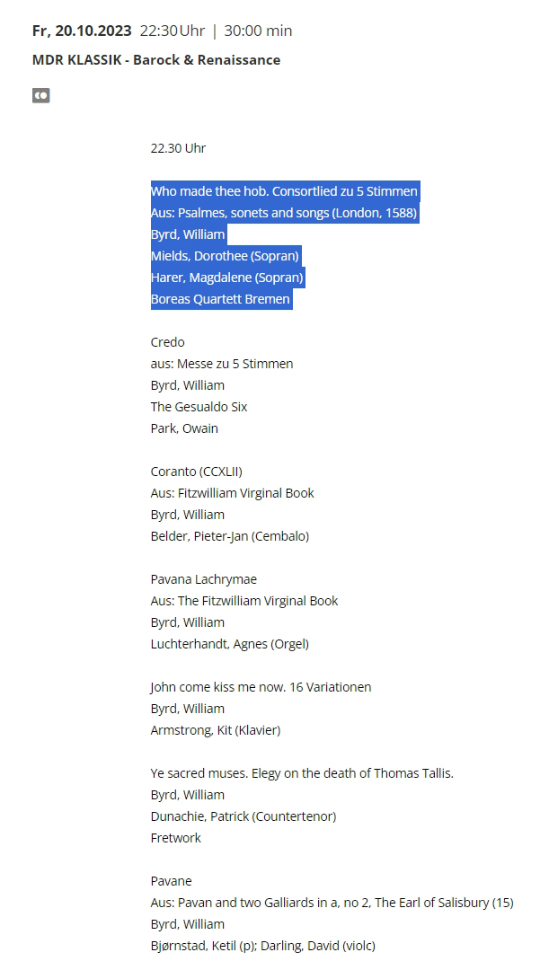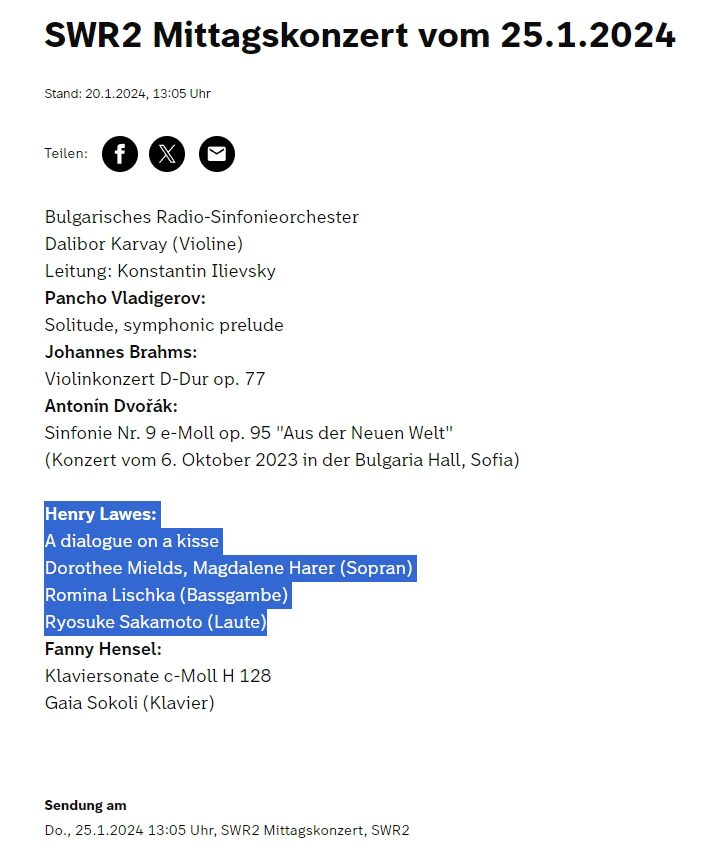 SWR | So., 1.10.2023, 16:05 Uhr, SWR2 Alte Musik | Doris Blaich | 1. Oktober 2023 | Quelle: https://www.swr.... BROADCAST