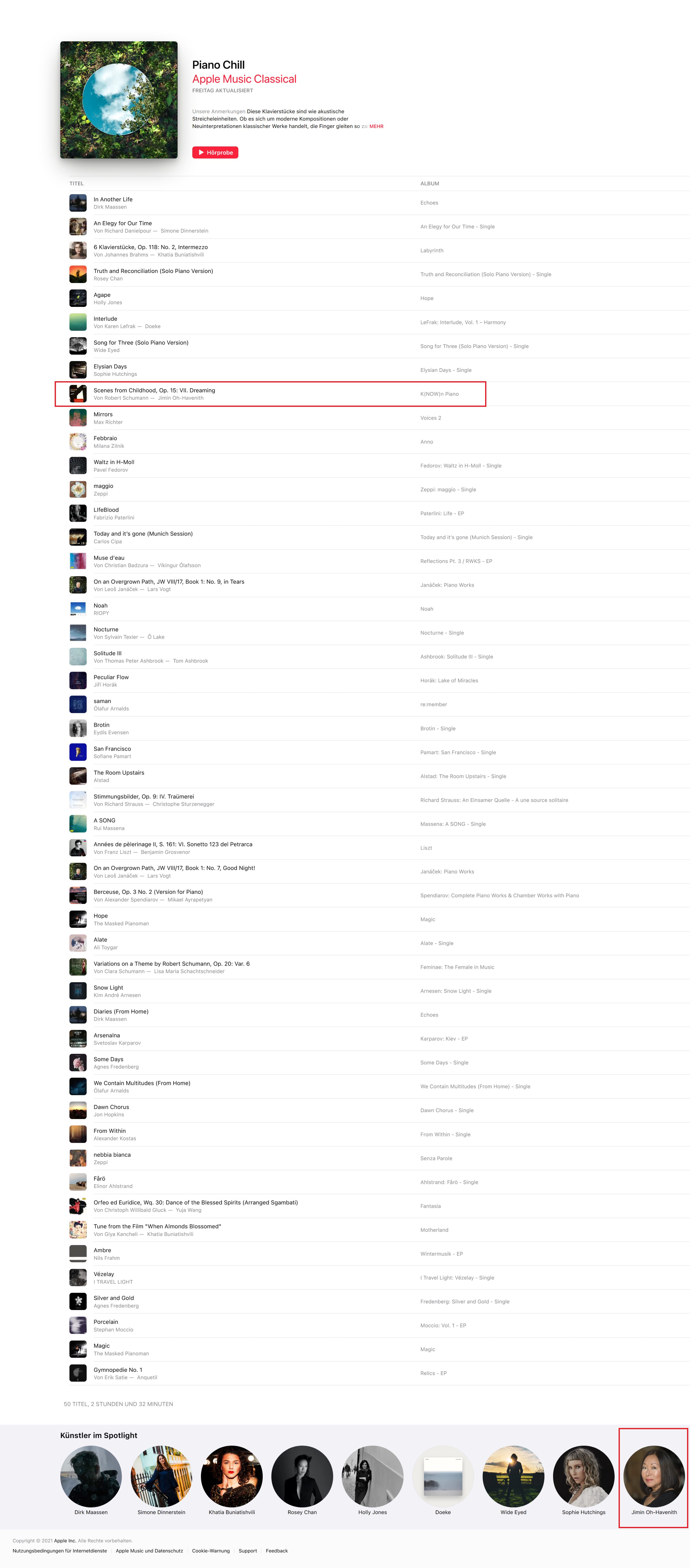 Oh-Haveniths hochdifferenzierte Interpretationskunst macht das Hören dieser CDs zu einem Erlebnis. Jedes der Stücke von Schumanns "Träumerei" über Beethovens "Für Elise" bis hin zu Ravels "Jeux d'eau" atmet einen individuellen Ausdruck und legt Zeugnis ab, wie intensiv und wie gefühlvoll sich diese Pianistin mit den Werken beschäftigt hat und immer wieder neu beschäftigt. Mehr lesen