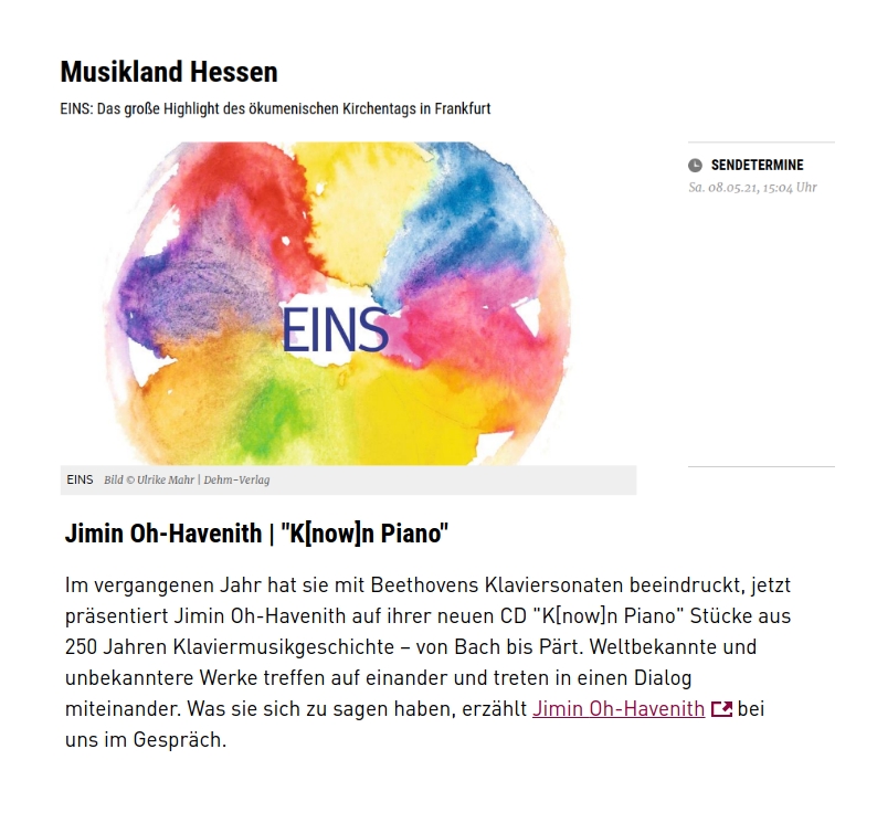 Great feature on Jimin Oh-Havenith's current CD project see PDF!Mehr lesen