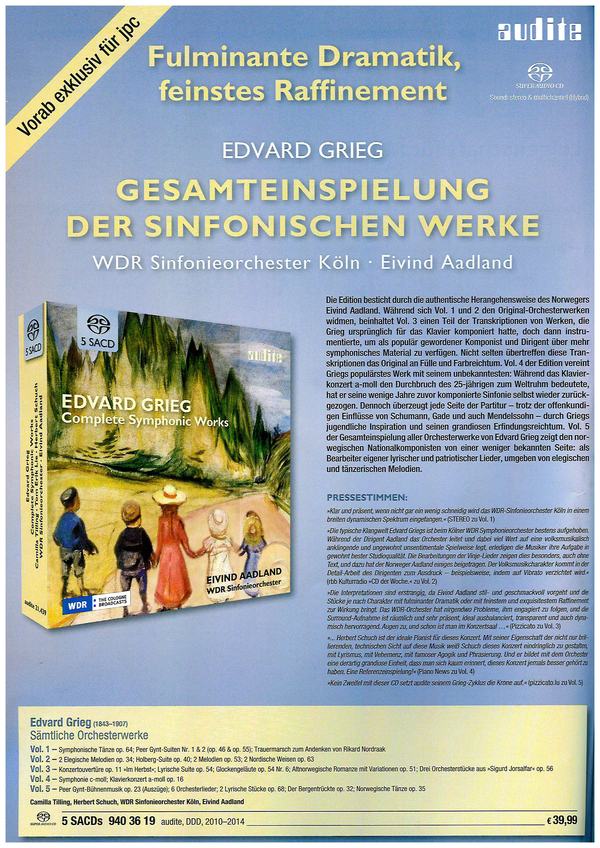 De volledige editie van Edvard Griegs symfonische werken met het WDR Symphony Orchestra onder Eivind Aadland is nu verkrijgbaar als een 5 SACD-boxset.Mehr lesen