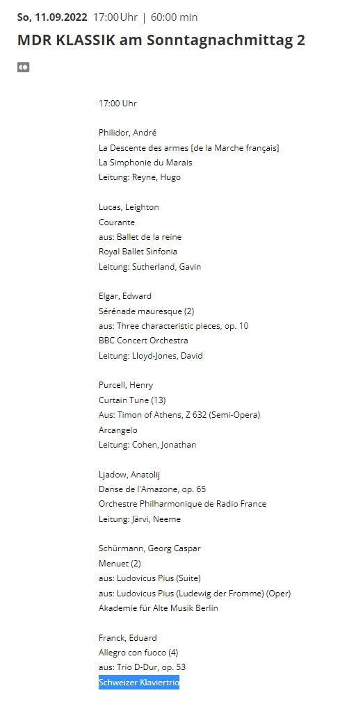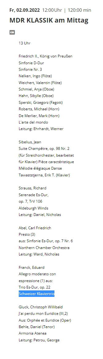 Der hohe Wert dieser Franck-Produktion liegt also nicht nur darin, dass die Kenntnis des Klaviertrio-Repertoires im 19. Jahrhundert erweitert wird, sondern dass die Werke als eigenständige Beiträge von großem Reiz sind – und von Schweizer Klaviertrio schlichtweg erstklassig präsentiert werden. Und schließlich lassen weder Beiheft noch klangliche Darstellung Wünsche unerfüllt.