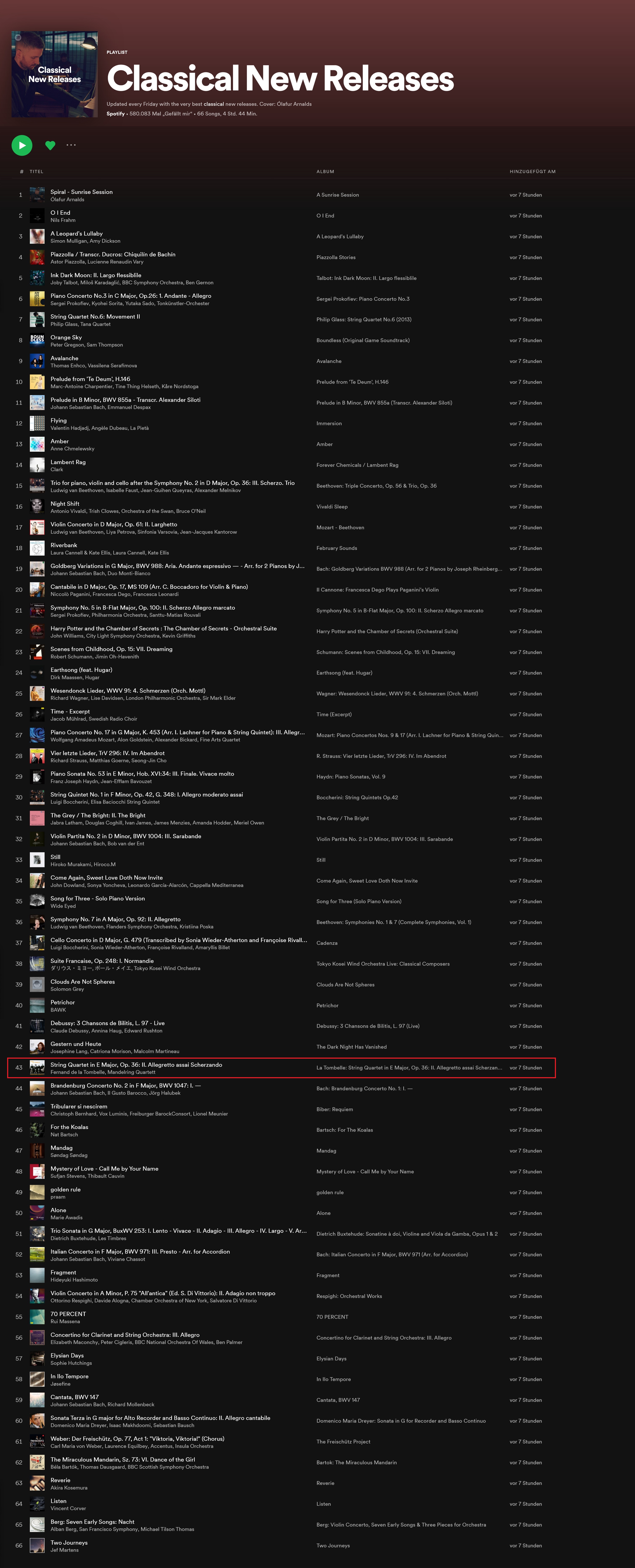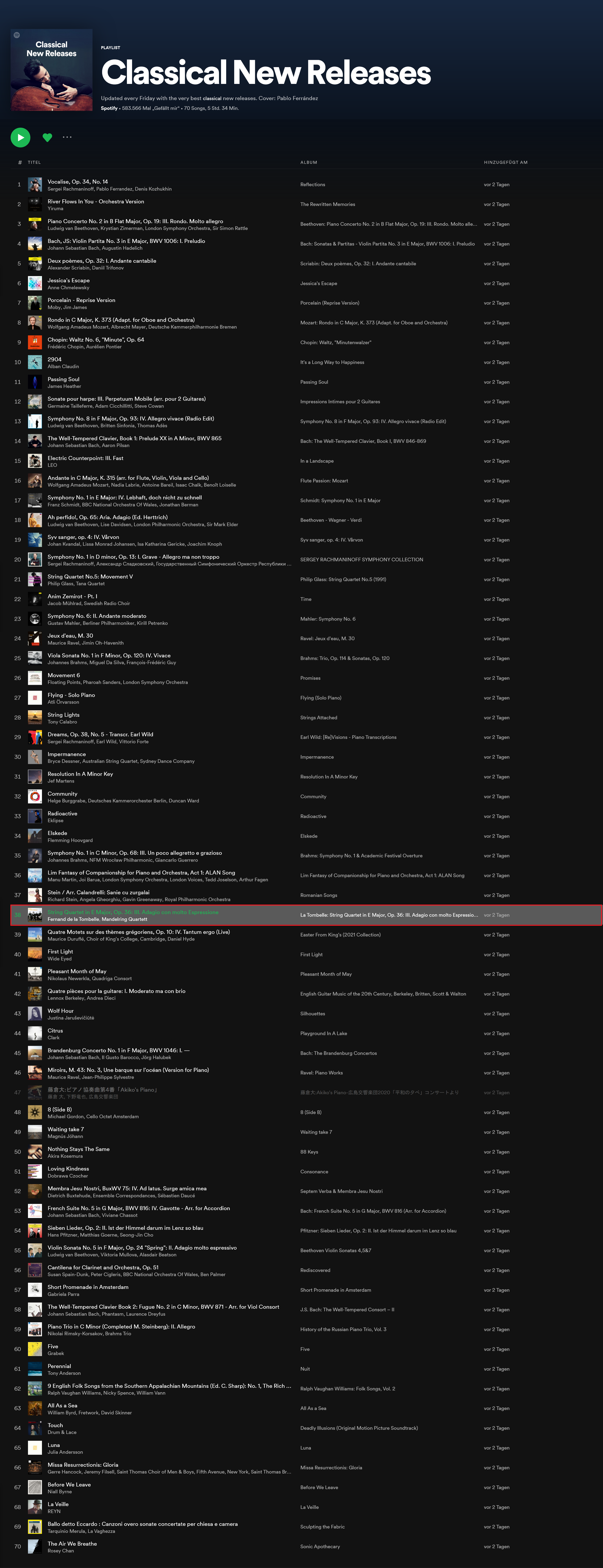 Now the situation is changing. With the Mandelring Quartet the first movement has a lot of verve and lyricism, the Scherzo is alert and contrasted. They are followed by an emotional Adagio that leads to a final movement that seems rather impatient and irritated, finally clearing the way for a high-flying, light-hearted coda. With this, the Tombelle Quartet has finally achieved of this work not only a beautiful resurrection but also a heavenly ascension.