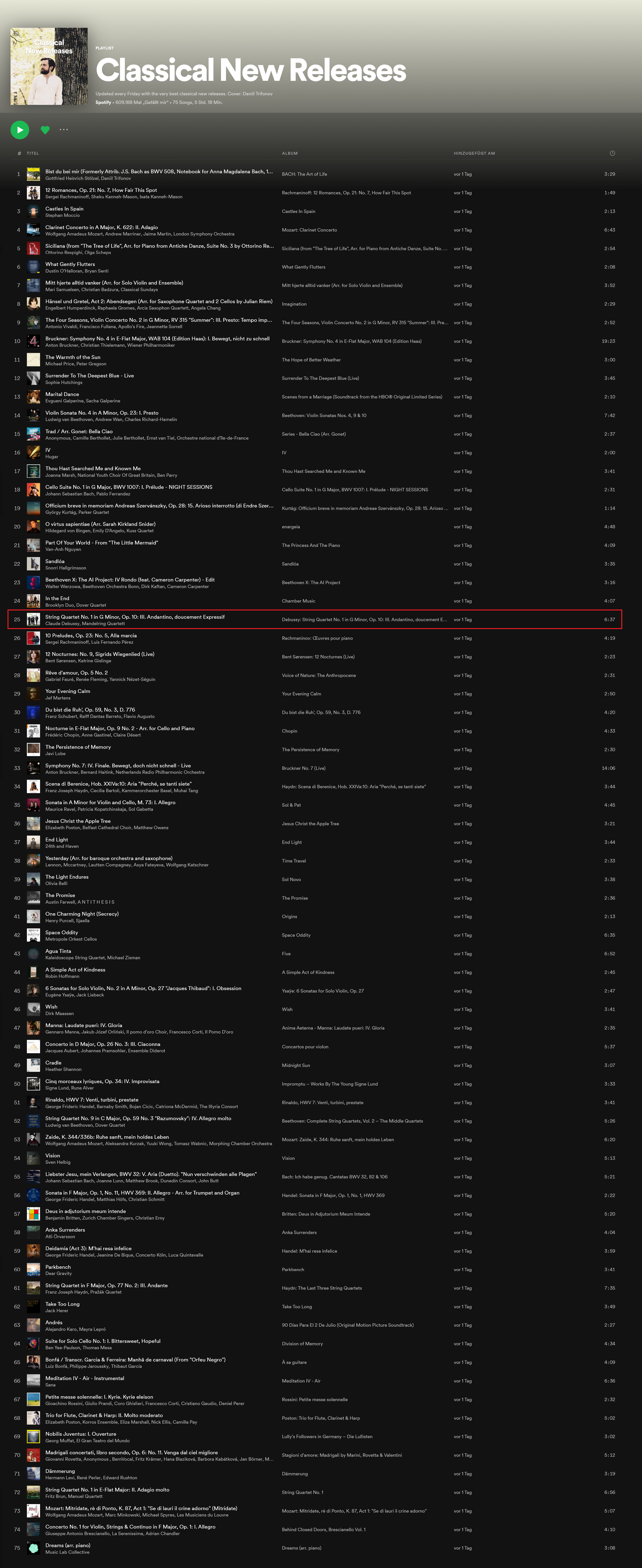Les Mandelring manifestent une fois encore leurs qualités coutumières : netteté, parfaite lisibilité de la texture polyphonique, qualité des timbres.Mehr lesen