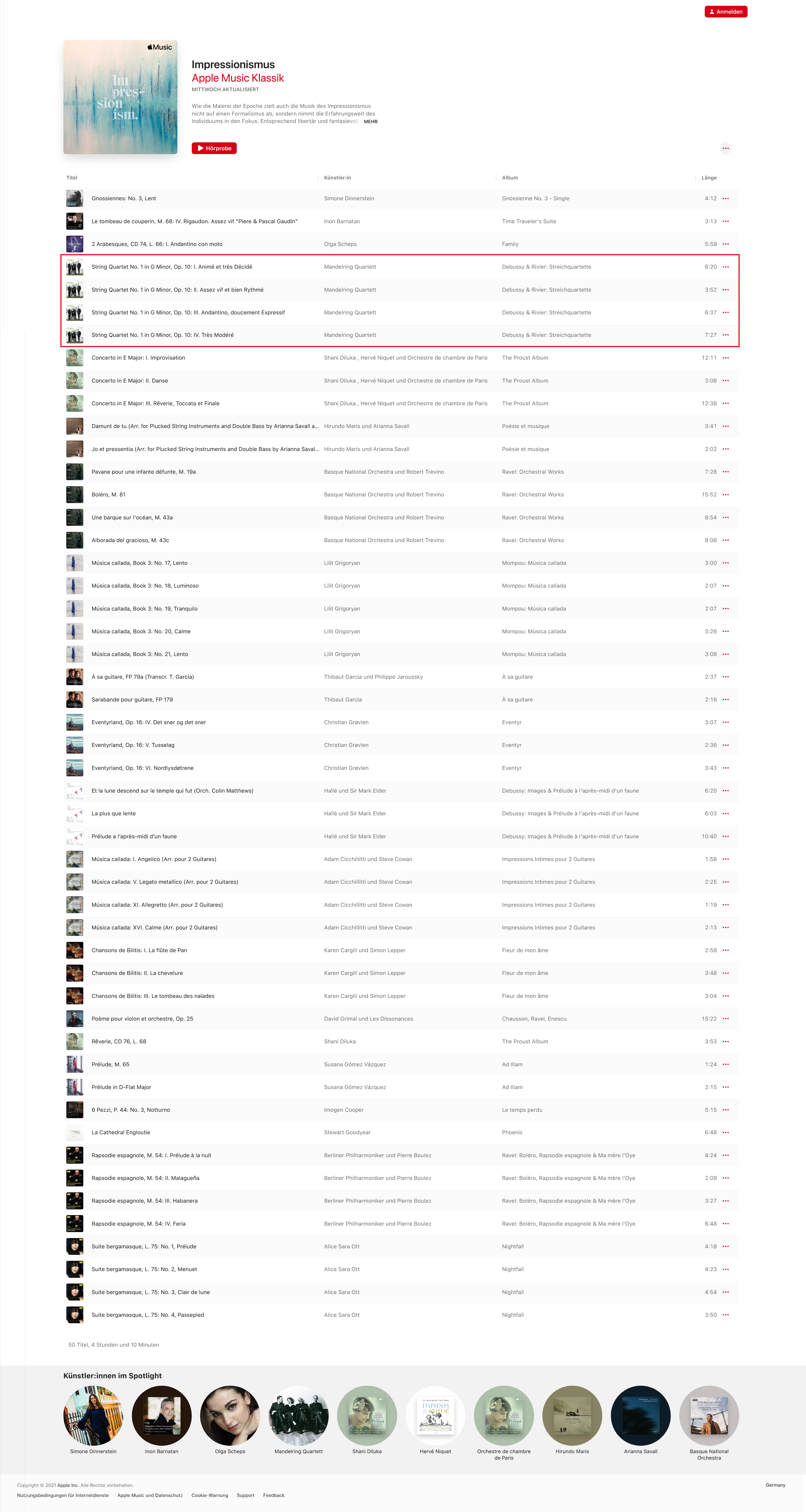 The combination of the two solitary quartets by Debussy and Ravel on one CD is, so to speak, commonplace. Sometimes another French quartet, for example by Fauré, is added. The Mandelring Quartet has abandoned this practice in order to include unknown quartets. After Ravel with Ferdinand de la Tombelle now follow Debussy and Jean Rivier on a second CD.