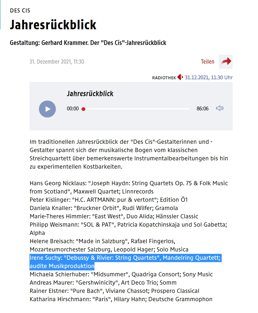 Der neue Merker | 12.12.2021 | Dr. Ingobert Waltenberger | December 12, 2021 | source: https://onlineme... Weltersteinspielung des Ersten Quartetts von Jean Rivier