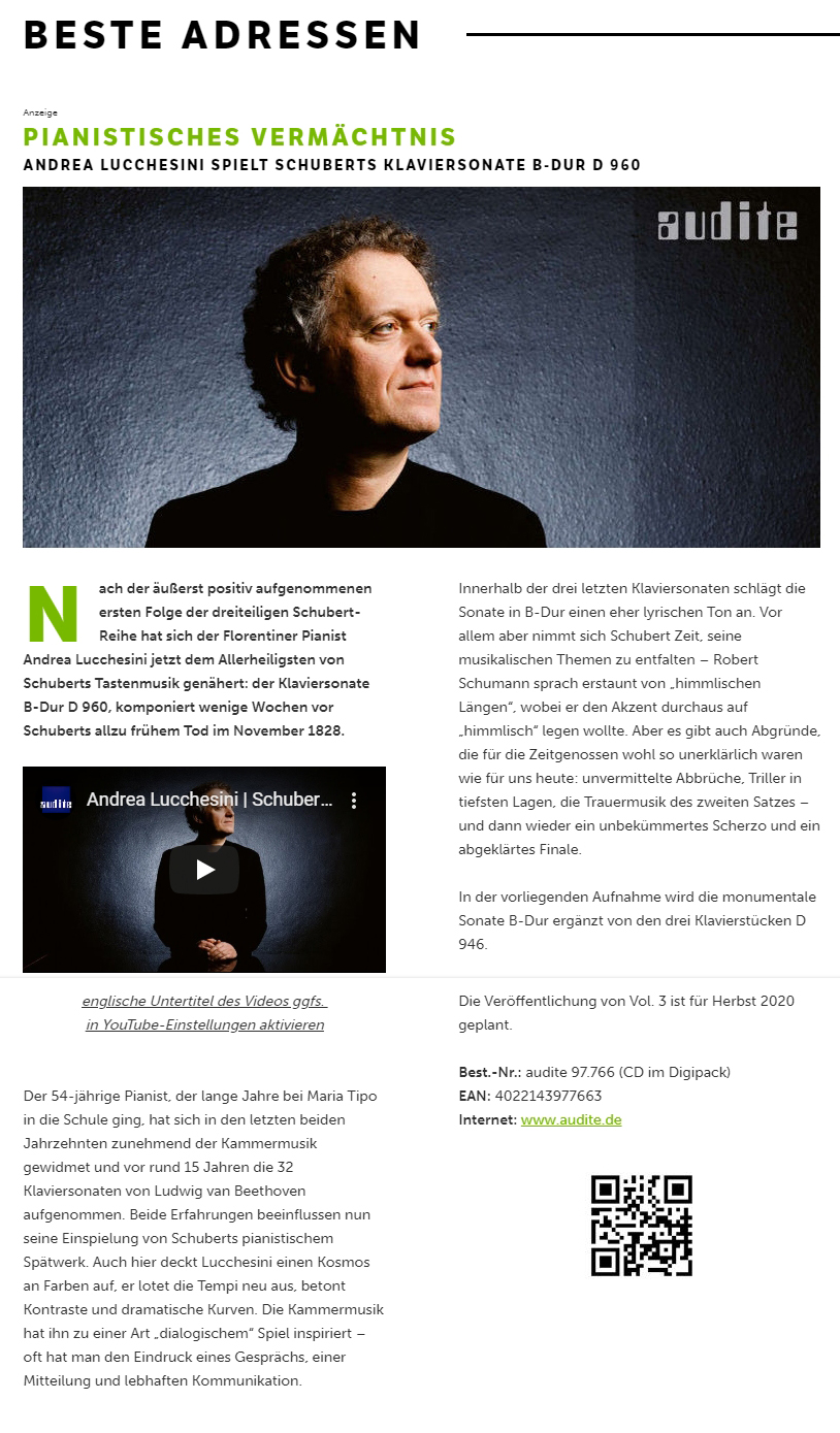 Crescendo Magazine | Le 12 avril 2020 | Jean Lacroix | April 12, 2020 | source: https://www.cres... Andrea Lucchesini: un Schubert à visage humain