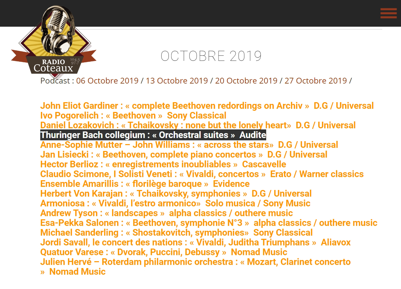 Elke Suite bestaat uit een ouverture, gevolgd door vijf tot zeven dansen (Passepied, Gavotte, Sarabande, Rigaudon, Menuet), een Air, een Rondeau, een Fantaisie, of genrestukken als La Joye, Caprice, Les plaisirs of La Tempête. Het Thüringer Bach Collegium geeft met amper elf musici (enkel strijkers, houtblazers en continuo), o.l.v. Gernot Süssmuth, (concertmeester van de Staatskapelle Weimar, Professor aan de Hochschule für Musik „Franz Liszt“ in Weimar en ook violist van het Waldstein Quartett), met de indringende klank van hun historische instrumenten, op een indrukwekkend authentieke manier, sonoor gestalte aan het roemrijk tijdperk van het land van de Bachs. Niet te missen. Schitterend!