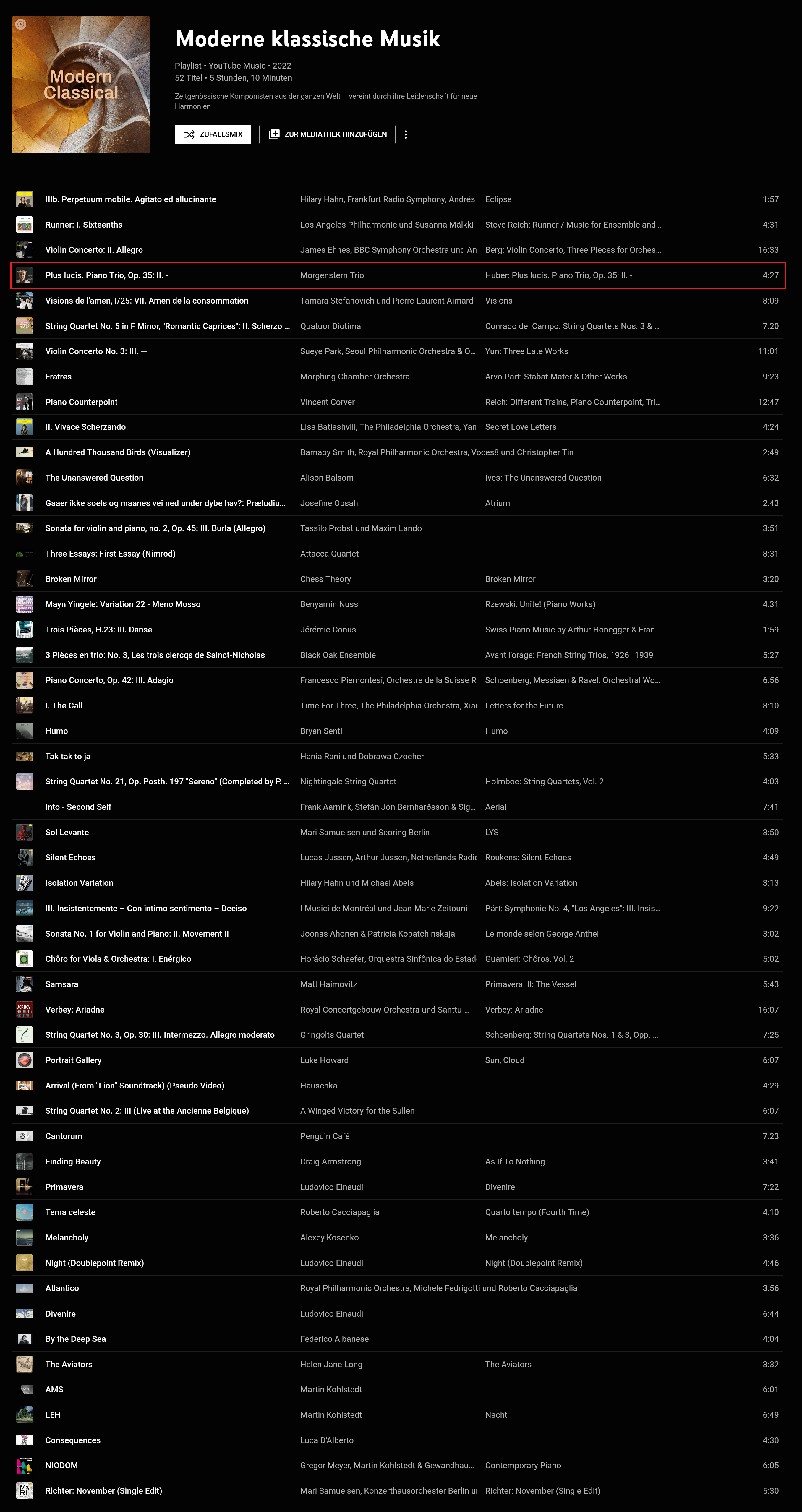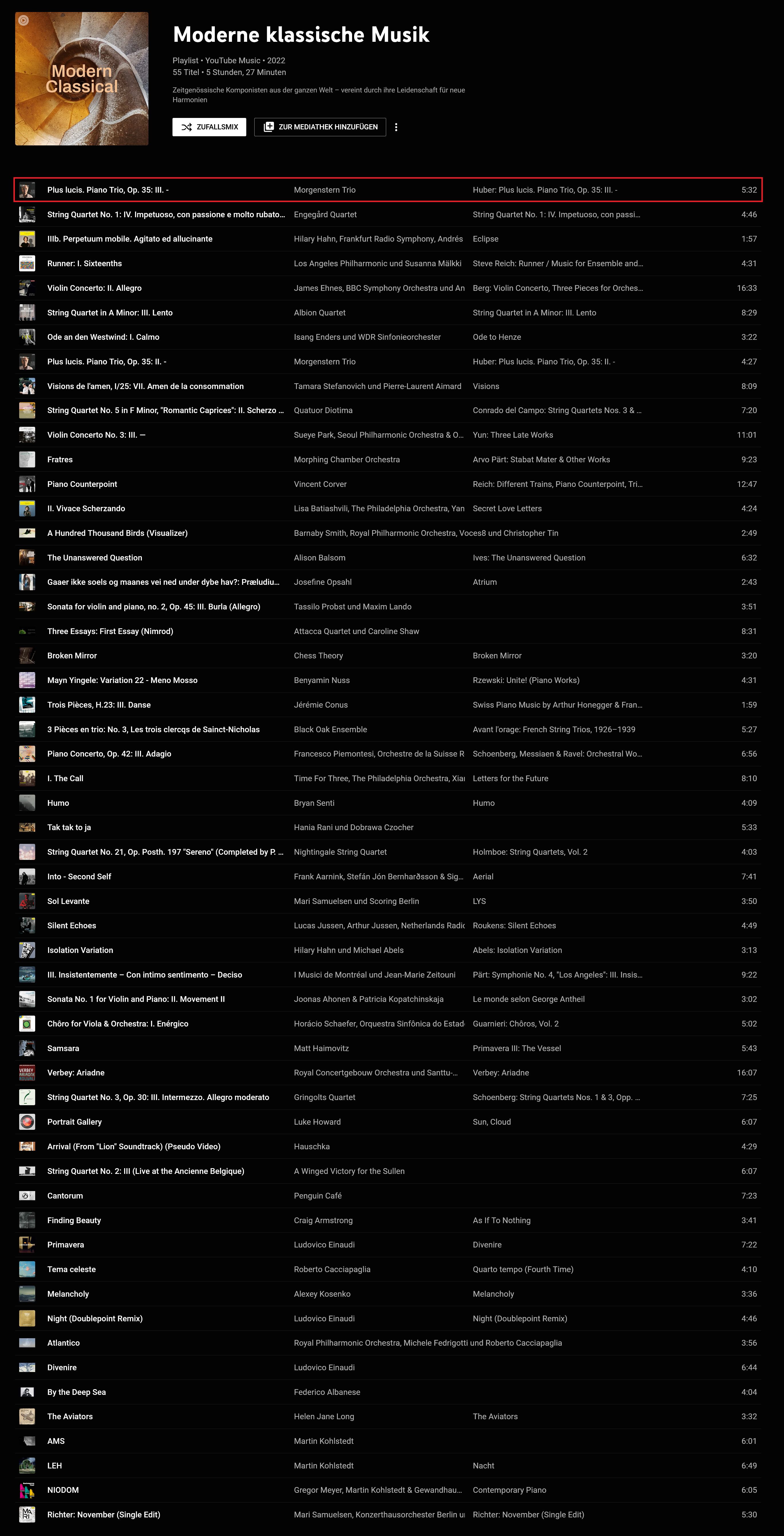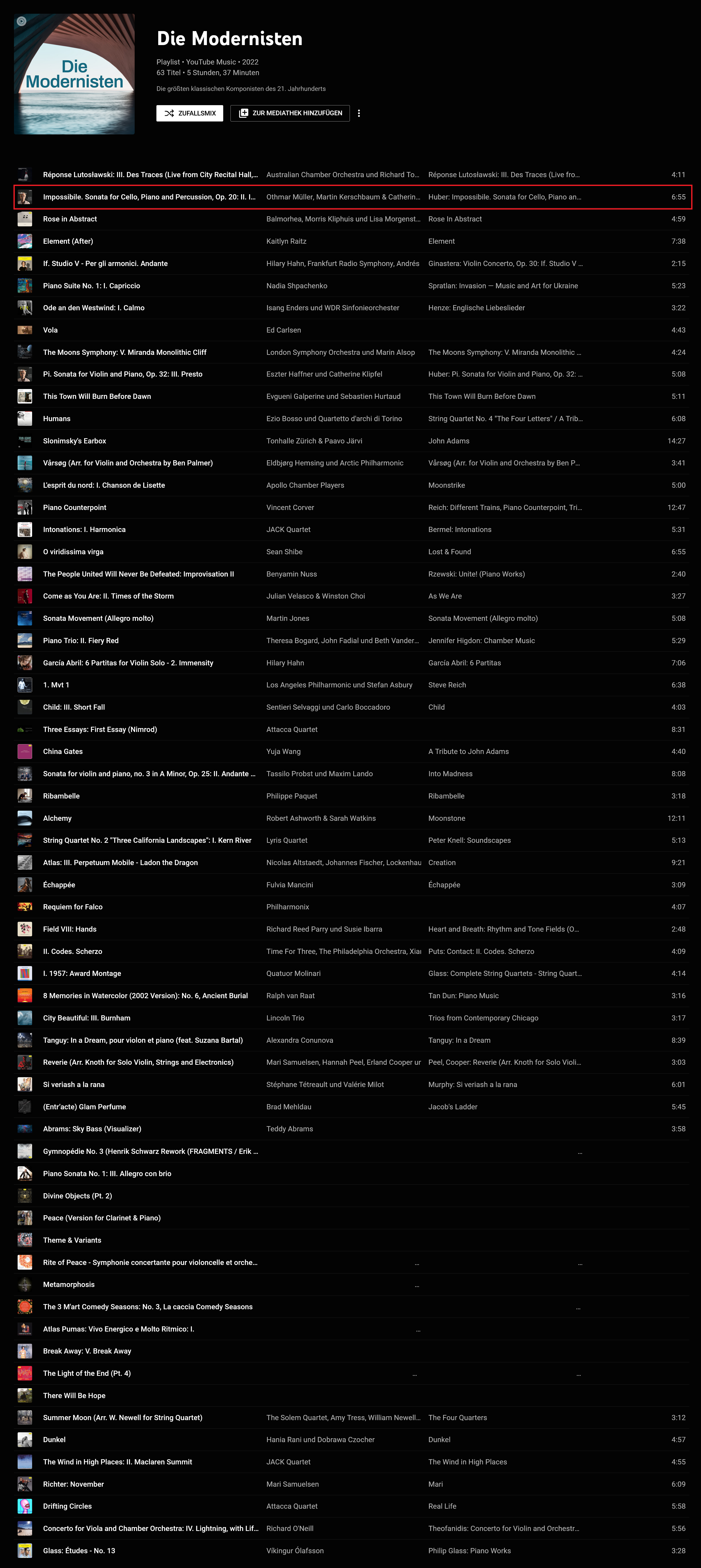 Except for Catherine Klipfel, who plays all the piano parts, they alternate instrumentation depending on the work. The Morgenstern Trio is the only permanent ensemble dedicated to the piano trio. They succeed in bringing out more of the atonal and raw side of the music. This gives the work a much more modern expression. The work Impossible with the unusual instrumentation offers a refreshing impression, which is carried by the rhythmic component as well as the lively design of the work and the congenial realization by the soloists taking advantage of these circumstances.