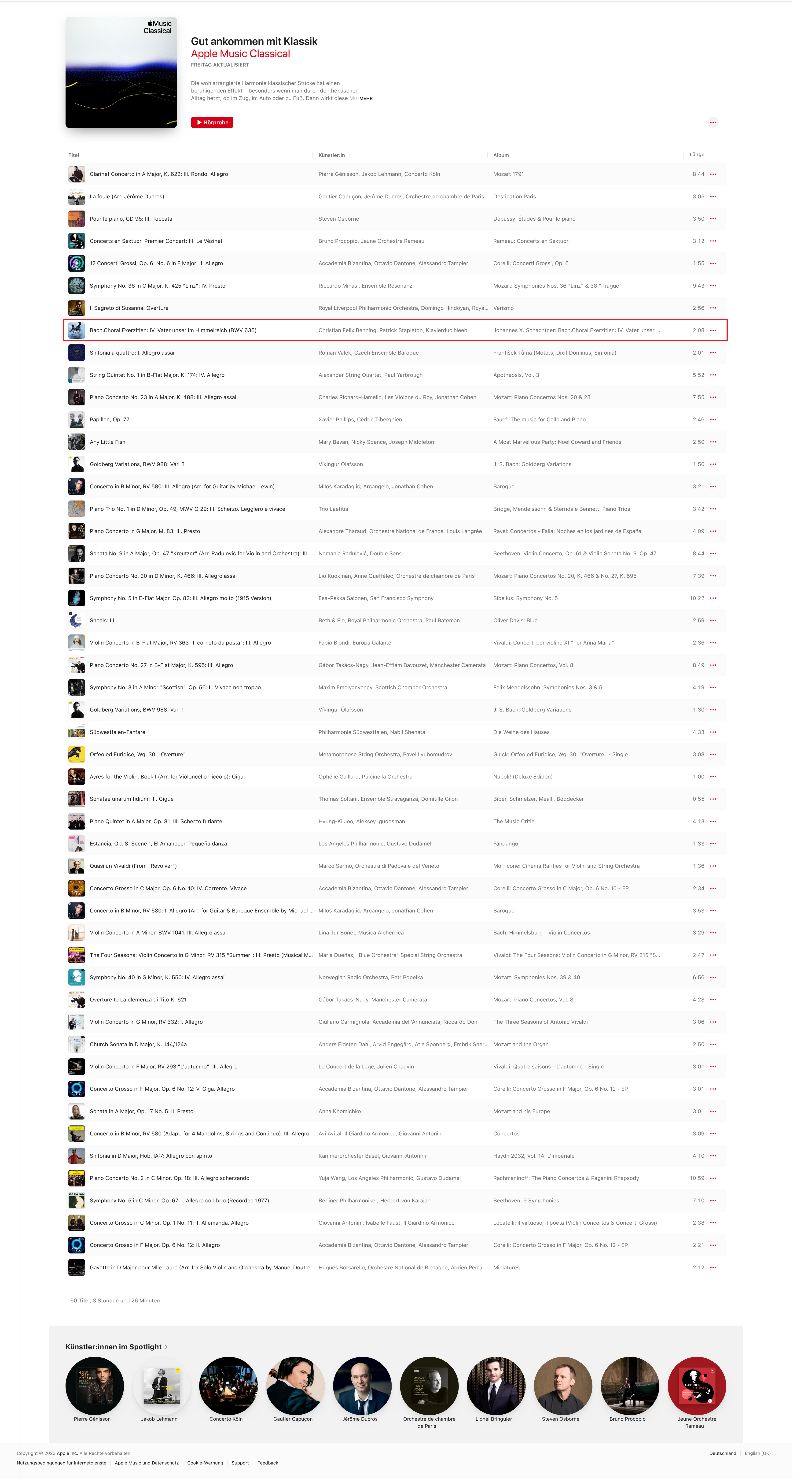 Musik: Bach – 13´25 (audite 97.814, Tracks 10 – 12)